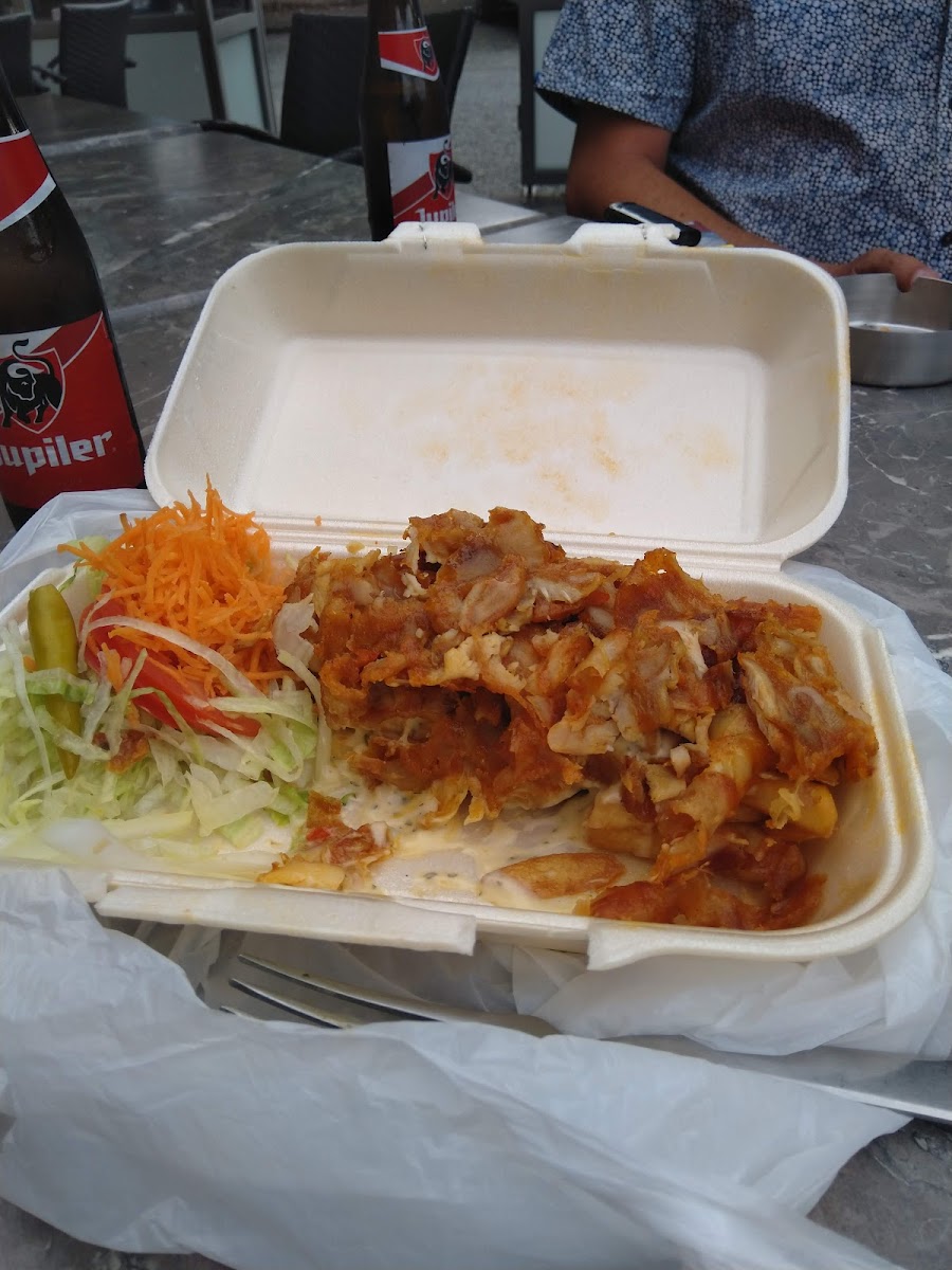 The café's sunny terrace at the back is a favored feature, offering a pleasant spot to unwind with a drink on warmer days. Whether you're arriving on foot, by bike, bus, or car, there’s generally no trouble finding a place to settle in, making it a convenient stop throughout the day or early evening.